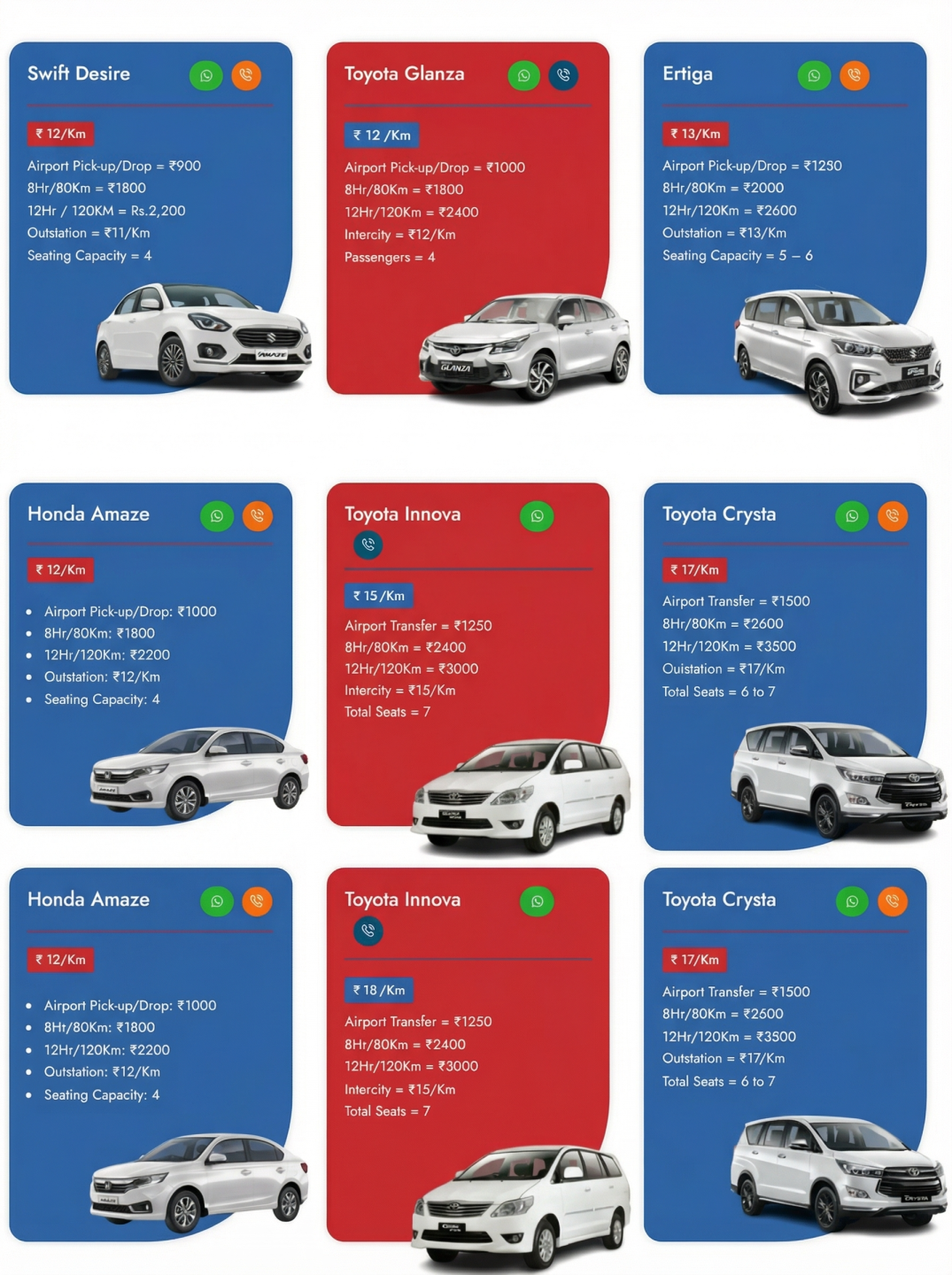 - Outstation Trips: Comfortable long-distance journeys to Prayagraj, Ayodhya, Gaya, and beyond.